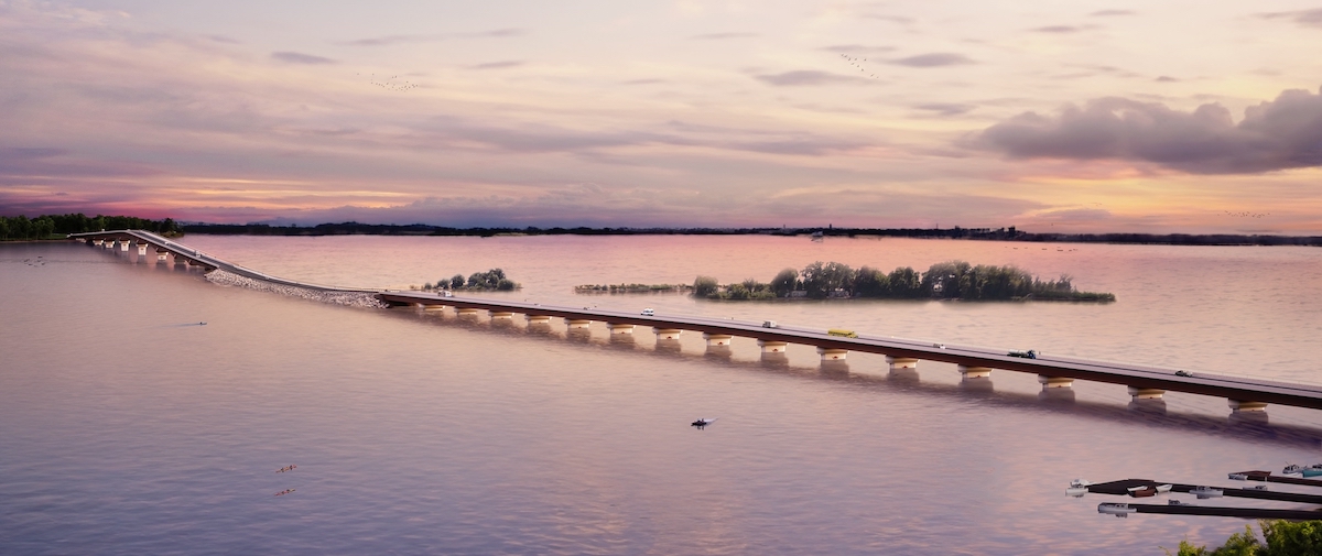 Two-lane fixed link includes separate bike and pedestrian lane. Rendering Courtesy: GIFL Secretariat